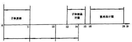 氣球法采樣系統示于圖4,其工作原理同雙濾膜法,只不過氣球代替了衰變筒。把氣球法測氡和馬爾柯夫法測潛能聯合起來,一次操作用26min,即可得到氡及其子體α潛能濃度。其時間程序示于圖5。